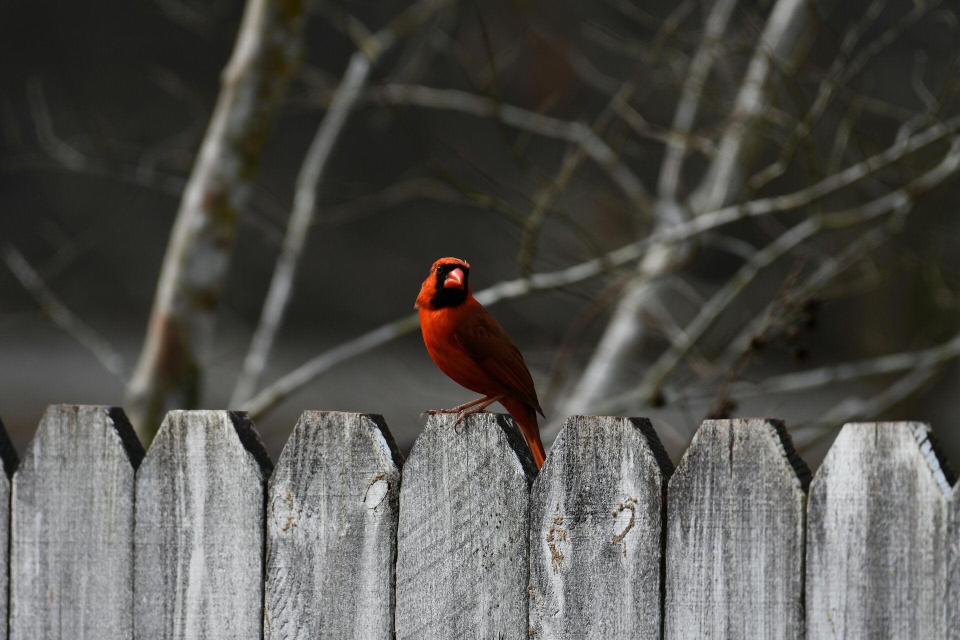 The same red cardinal, perched like clockwork on our old garden bench.